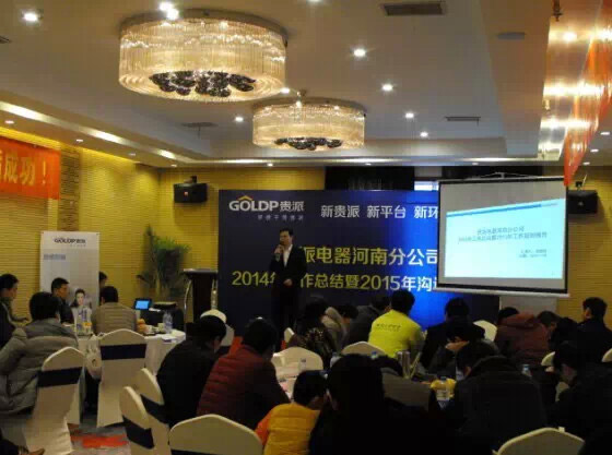 1月26日,以"新貴派·新平臺·新環(huán)境·新發(fā)展"為主題的貴派電器河南分公司2014年會暨2015年溝通交流大會在鄭州銀河國際酒店舉行!貴派電器副總經(jīng)理王楓,營銷總監(jiān)許銘峰,河南分公司總經(jīng)理李良輝,省區(qū)經(jīng)理沈新躍和來自河南各地的60余名核心經(jīng)銷商與會.