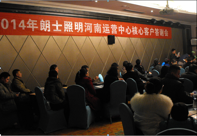 1月15日,2014年朗士照明河南運(yùn)營中心核心客戶答謝會在鄭州逸泉酒店舉行。朗士照明總經(jīng)理夏天,河南辦事處經(jīng)理雷步昌,河南運(yùn)營中心總經(jīng)理楊杰和來自河南各地的50余名經(jīng)銷商與會。