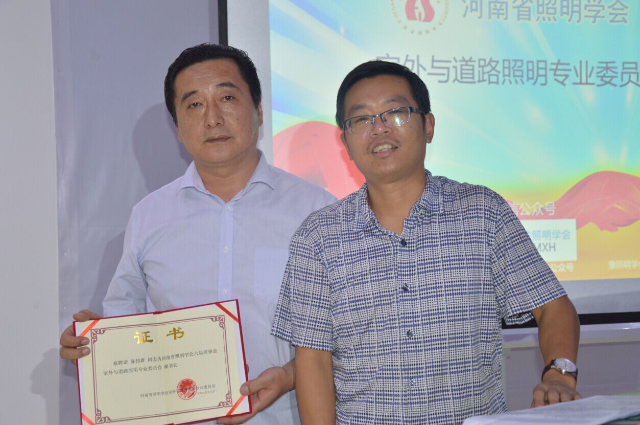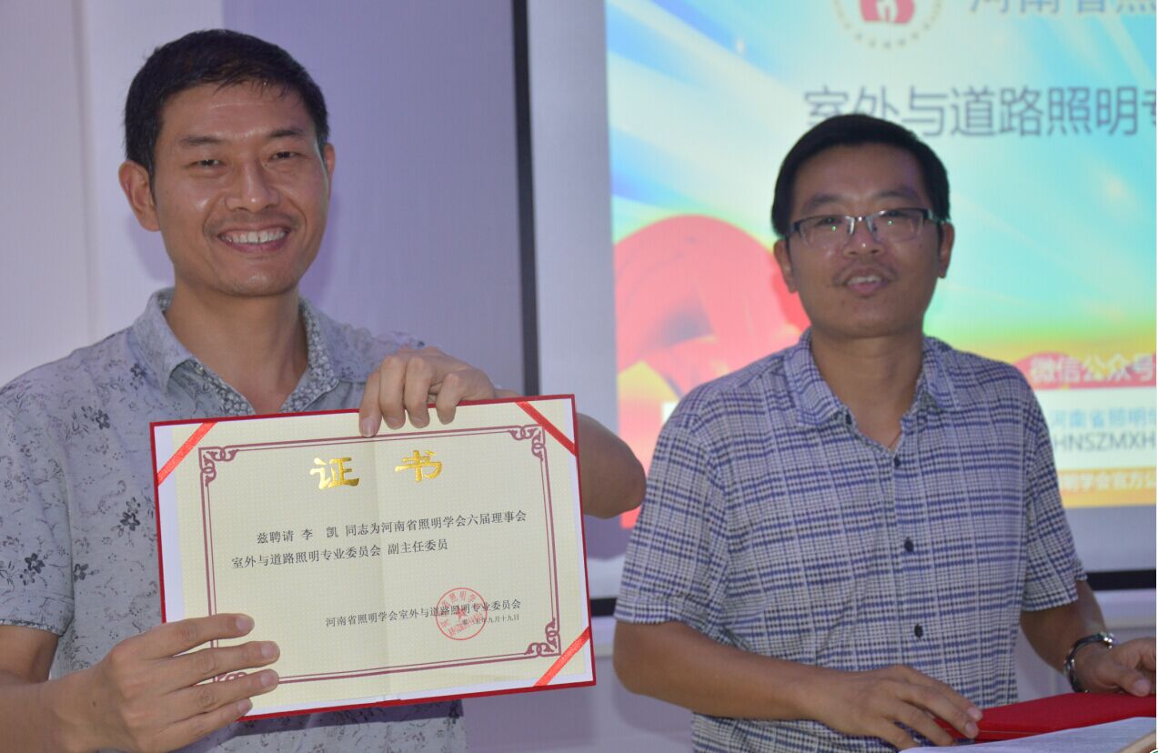 會(huì)上,河南省照明學(xué)會(huì)秘書長(zhǎng)兼室外與道路照明委員會(huì)主任委員姚凱首先介紹了室外與道路照明專業(yè)委員會(huì)的機(jī)構(gòu)組成和主要工作方向。室外與道路照明專業(yè)委員會(huì)是河南省照明學(xué)會(huì)的二級(jí)機(jī)構(gòu),受河南省照明學(xué)會(huì)領(lǐng)導(dǎo),辦公地點(diǎn)設(shè)在鄭州中部LED交易中心二樓,這里是學(xué)會(huì)的學(xué)術(shù)交流與培訓(xùn)中心,同時(shí)也是組織工作委員會(huì)的辦公地點(diǎn)。專委會(huì)設(shè)副主任委員兩名,分別由李凱和馮健擔(dān)任,秘書長(zhǎng)由陳偉群擔(dān)任,并現(xiàn)場(chǎng)頒發(fā)了聘書。