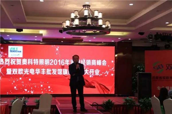 接著,河南雙歐光電總經(jīng)理劉建軍針對(duì)公司的發(fā)展方向和規(guī)劃進(jìn)行了講解。他表示,河南雙歐光電專(zhuān)注照明行業(yè)近20年,有著豐富行業(yè)積累和成熟的品牌運(yùn)作經(jīng)驗(yàn)。在2016年,雙歐光電逆流而上,不僅與奧科特等實(shí)力品牌達(dá)成戰(zhàn)略合作,而且新建了300余平方米的雙歐光電旗艦店和3000余平方米的倉(cāng)庫(kù)。同時(shí),雙歐光電還加大了人員投入,全力打造雙歐光電的經(jīng)銷(xiāo)商服務(wù)平臺(tái)。
