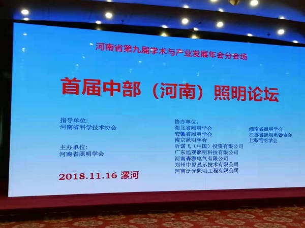 11月16日,在河南省第九屆學(xué)術(shù)與產(chǎn)業(yè)發(fā)展年會在漯河市召開之際,由河南省照明學(xué)會主辦的分論壇——首屆中部(河南)照明論壇在漯河金都大酒店舉行。本次活動得到了湖北省照明學(xué)會、湖南省照明學(xué)會、安徽省照明學(xué)會、上海市照明學(xué)會和昕諾飛(中國)投資有限公司、廣東旭觀照明科技有限公司、鄭州森源新能源科技有限公司、鄭州中原顯示技術(shù)有限公司、河南泛光照明工程有限公司等學(xué)會和企業(yè)的大力支持。