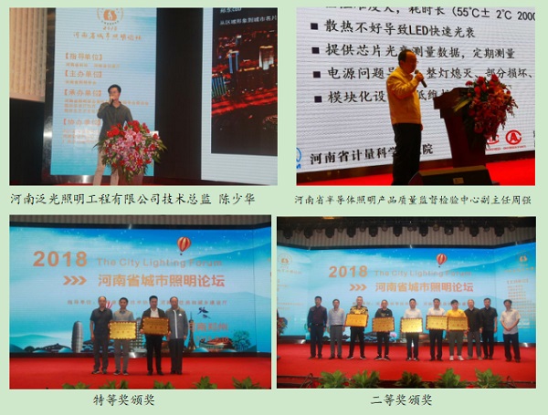 會后同期舉行了河南省第六屆中原照明獎的頒獎儀式。其中特等獎兩項(xiàng),一等獎兩項(xiàng),特等獎中的綠地雙塔夜景照明工程同時(shí)獲得中照獎一等獎。