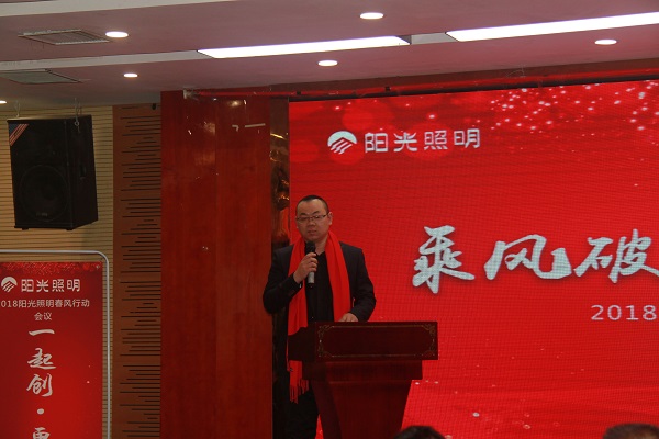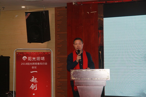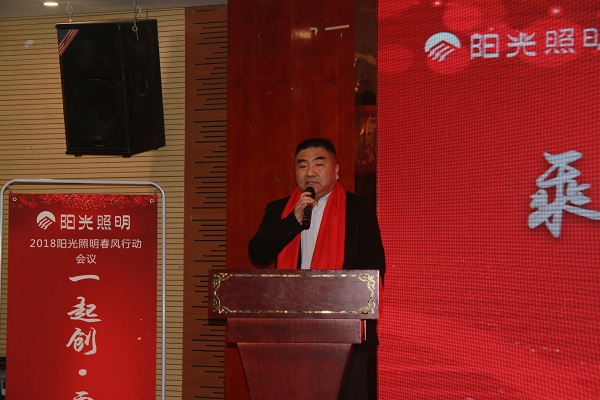 會(huì)上,陽光照明河南運(yùn)營中心、河南惠旭機(jī)電設(shè)備有限公司總經(jīng)理宋健首先致辭。他首先向與會(huì)的各位廠家領(lǐng)導(dǎo)和經(jīng)銷商朋友表示歡迎和感謝。他表示,2017年,在各級(jí)經(jīng)銷商的共同努力下,陽光照明河南市場(chǎng)齊心協(xié)力,迎難而上,取得了喜人的成績(jī)。2018年,河南惠旭機(jī)電將會(huì)和各級(jí)經(jīng)銷商一起,堅(jiān)定信心,再接再厲,再創(chuàng)陽光照明在河南市場(chǎng)的新輝煌。