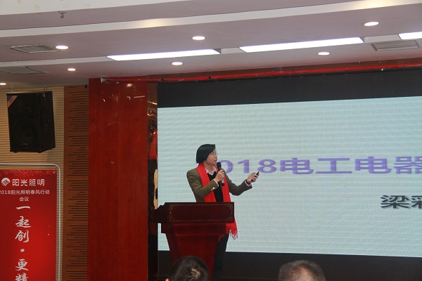 接著,安徽陽光照明電器有限公司家居流通電工電器總監(jiān)梁彩雷作電工電器銷售思路分享。他一方面從行業(yè)高度分析了當(dāng)前電工電器行業(yè)的現(xiàn)狀和發(fā)展趨勢(shì),指出了陽光電工面臨的挑戰(zhàn)和發(fā)展機(jī)遇;另一方面針對(duì)陽光電工的產(chǎn)品系列,產(chǎn)品特點(diǎn)和優(yōu)勢(shì)進(jìn)行了講解。讓與會(huì)經(jīng)銷商對(duì)陽光電工充滿了信心。