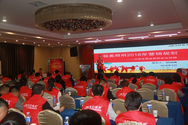 接著,極美照明河南分公司經(jīng)理王建勛針對(duì)極美照明在河南區(qū)域的市場情況,網(wǎng)點(diǎn)分布,銷售對(duì)比和促銷活動(dòng)進(jìn)行了全面梳理。同時(shí),他對(duì)極美照明河南市場 2018年的銷售規(guī)劃進(jìn)行了說明。