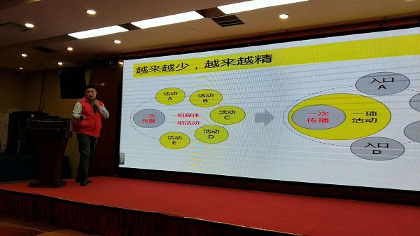 為了“贏戰(zhàn)五一”,極美照明在本次會(huì)議上啟動(dòng)了以“百團(tuán)大戰(zhàn)”為主題的全國聯(lián)動(dòng)活動(dòng)。極美照明河南分公司(河南富瑞照明)營銷總監(jiān)江東偉針對(duì)為什么要做活動(dòng)?如何做活動(dòng)?以及百團(tuán)大戰(zhàn)全國聯(lián)動(dòng)活動(dòng)的詳細(xì)內(nèi)容和落地執(zhí)行方案進(jìn)行了詳細(xì)講解,并現(xiàn)場與經(jīng)銷商互動(dòng),極大的提高了與會(huì)經(jīng)銷商的積極性。