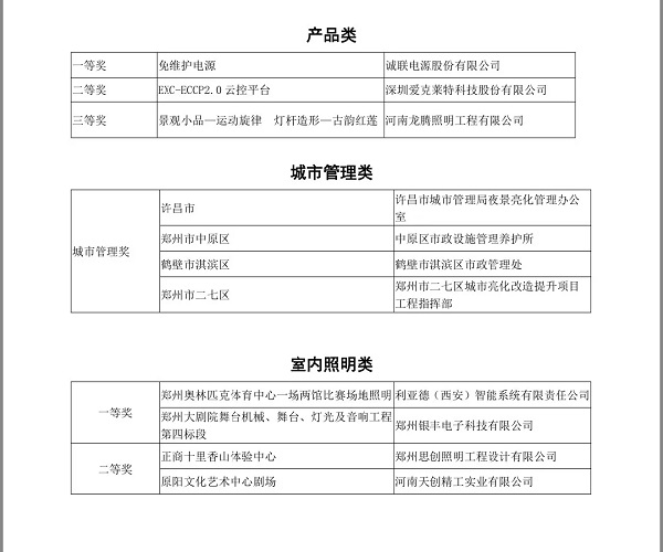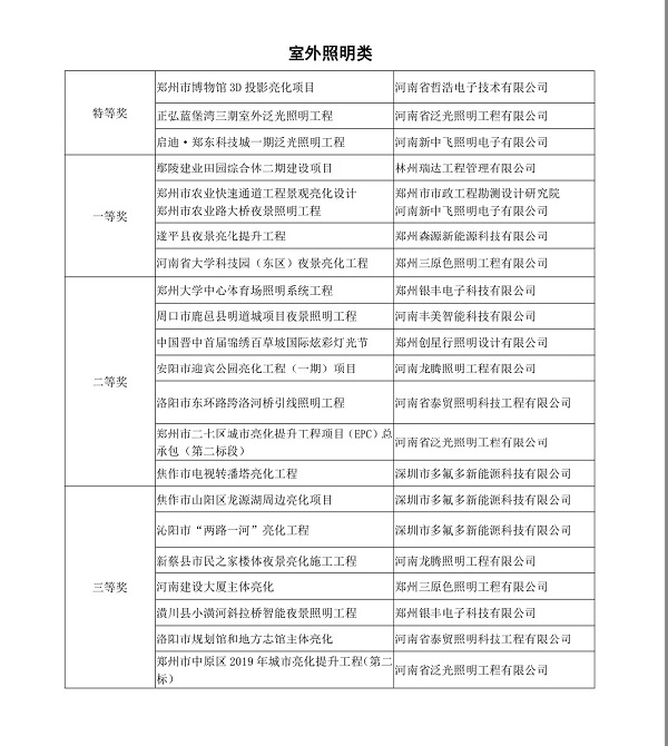 2019年12月15日,第七屆中原照明獎隆重揭曉,并在河南省照明學(xué)會三十周年慶典暨2019智慧城市照明論壇上舉行了頒獎典禮。河南新中飛照明電子有限公司、河南省泛光照明工程有限公司、誠聯(lián)電源股份有限公司、河南龍騰照明工程有限公司等一批優(yōu)秀的照明工程企業(yè)和生產(chǎn)企業(yè)受到表彰。