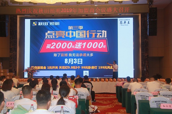在“點亮中國行動”第三季聯(lián)動促銷活動中,秋田照明首次導(dǎo)入2019年最新的營銷方案,在導(dǎo)入裝修風(fēng)水知識培訓(xùn)的同時,助力經(jīng)銷商團隊打造和士氣提升。整個過程由專業(yè)老師進店調(diào)查幫扶,手把手教會加盟商集客方法和銷售技巧,全面提升他們的綜合實力。