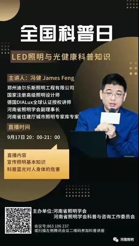 河南省照明學(xué)會(huì)自成立以來(lái),充分發(fā)揮橋梁紐帶的作用,參與到照明行業(yè)發(fā)展規(guī)劃建設(shè)中去,為繁榮和發(fā)展河南省照明事業(yè)不斷貢獻(xiàn)自己的力量。本次講座從活動(dòng)策劃、面向?qū)ο蟆⒅黝}內(nèi)容等方面都經(jīng)過(guò)河南省照明學(xué)會(huì)專家們的多次論證與反復(fù)討論,最終選擇社會(huì)影響大、群體受眾廣的“LED照明與光健康科普知識(shí)”主題。該活動(dòng)主要針對(duì)青少年對(duì)照明科技和健康照明知識(shí)缺乏了解的現(xiàn)狀,初步介紹從自然光到人工光源的發(fā)展史,尤其是LED光源的發(fā)展過(guò)程及在實(shí)際生活中的正確應(yīng)用方法。采用線上論壇的形式,聘請(qǐng)中國(guó)照明學(xué)會(huì)教育與培訓(xùn)工作委員會(huì)資深專家馮健老師,為大家詳細(xì)的介紹LED照明基礎(chǔ)知識(shí),以及健康照明的正確使用方法。