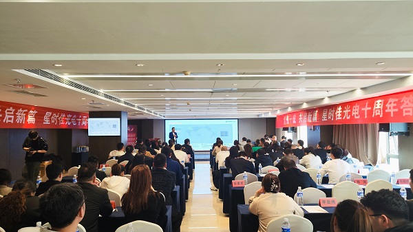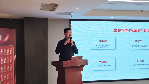 活動(dòng)伊始,河南星時(shí)佳光電總經(jīng)理時(shí)耀先發(fā)表致辭,深情回顧企業(yè)十年發(fā)展歷程。他表示,星時(shí)佳光電從初創(chuàng)到成長為行業(yè)新秀,離不開合作伙伴的鼎力支持。面對(duì)AI與智能技術(shù)驅(qū)動(dòng)的行業(yè)變革,時(shí)耀先呼吁經(jīng)銷商堅(jiān)定信心、把握機(jī)遇,攜手迎接智能照明時(shí)代的紅利。他還展望了企業(yè)未來在品牌建設(shè)、市場拓展方面的戰(zhàn)略方向,傳遞出深耕行業(yè)、引領(lǐng)變革的決心。