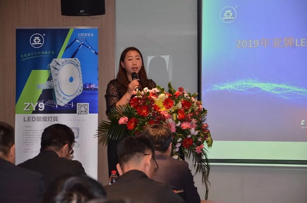 河南市場運營中心鄭州市亞飛照明電器貿易有限公司張利女士做會議發(fā)言,表態(tài)將積極配合亞明做好河南區(qū)域的市場服務工作,服務客戶,為提升亞牌產品市場占有率 ,實現共贏,共同奮斗。